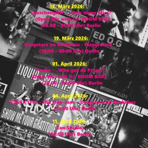 Having been part of the Hip Hop culture for over 20 years, DJ BOOM BAP digs deep into the crates and plays predominantly (underground) rap that is far away from the commercial. The sets are characterized by creativity, versatility, and a talent for improvisation and reading the audience. Whether it’s rap bangers that make the crowd go crazy, instrumental sets for freestyle cyphers, Funk, or Soul – DJ BOOM BAP has the dopest vinyls! With a passion for Hip Hop culture as strong as the first day, everything else is forgotten when the first record isplayed and the audience is taken on an overwhelming musical journey.